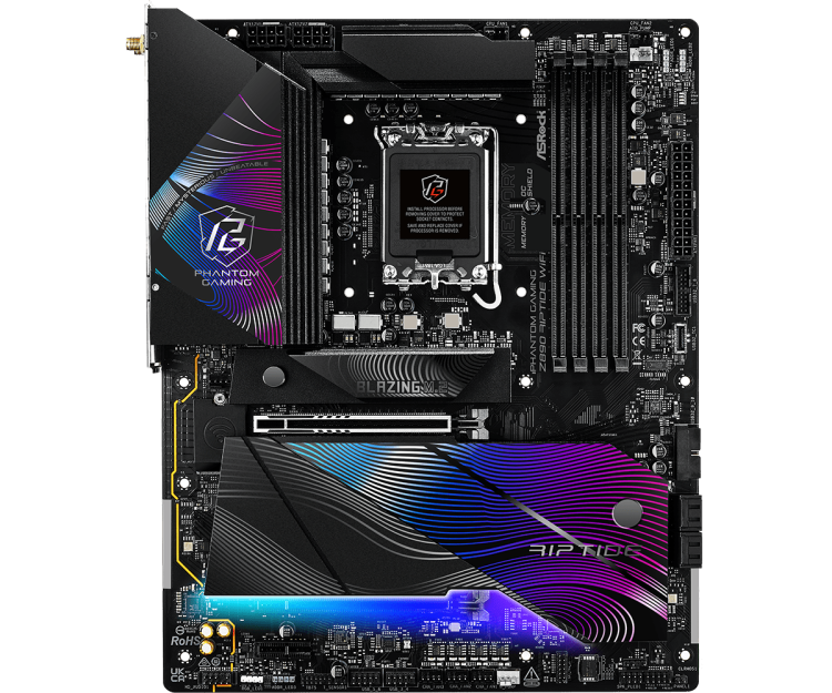 Материнская плата ASRock Z890 Riptide WiFi, LGA 1851, Intel Z890, 4xDDR5, 4xSATA, 5xM.2, 1xPCIe 5.0 x16, 1xPCIe 4.0 x16, 1xPCIe x1, 2xUSB-C Thunderbolt 4, 4xUSB-A 3.2 Gen 1, 1xUSB-A 3.2 Gen 2, 1xHDMI, 1x2.5Gb LAN, 4x3.5 мм, 7.1, ATX