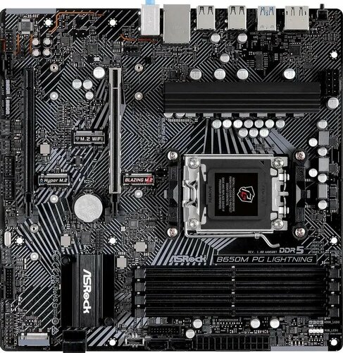 Материнская плата ASRock B650 PG Lightning, AM5, AMD B650, 4xDDR5, 4xSATA, 3xM.2, 1xPCI-E 4.0 x16, 1xPCI-E 4.0 x2, 1xHDMI, 1x 2.5Gb LAN, 4xUSB-A 2.0, 7xUSB-A 3.2 Gen 1, 1xUSB-C 3.2 Gen 2x2, 3x3.5 мм, 7.1, ATX