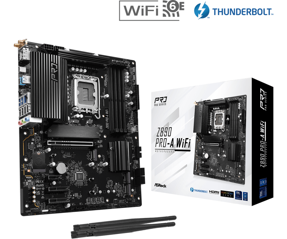 Материнская плата ASRock Z890 PRO-A WIFI, LGA 1851, Intel Z890, 4xDDR5, 4xSATA, 4xM.2, 1xPCIe 5.0 x16, 2xPCIe 4.0 x4, 1xPCIe 4.0 x1, 1xHDMI, 1xDP, 1xThunderbolt 4, 1x2.5Gb LAN, 4xUSB-A 3.2 Gen 1, 2xUSB-A 3.2 Gen 2, 1xUSB-C 3.2 Gen 2, 2xUSB-C Thunder