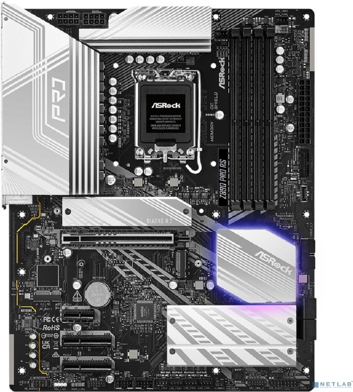 Материнская плата ASRock Z890 PRO RS, LGA1851, Intel Z890, 4xDDR5, 4xSATA, 4xM.2, 1xPCIe 5.0 x16, 2xThunderbolt 4, 1xUSB-A 3.2 Gen 2, 6xUSB-A 3.2 Gen 1, 4xUSB 2.0, 1xHDMI, 1xDP, 1x2.5Gb LAN, 3x3.5 мм, 7.1, ATX
